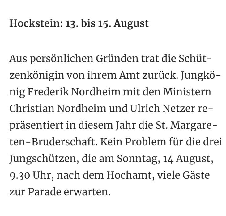 beruflichen Gründen trat vor einiger Zeit die legitime Schützenkönigin